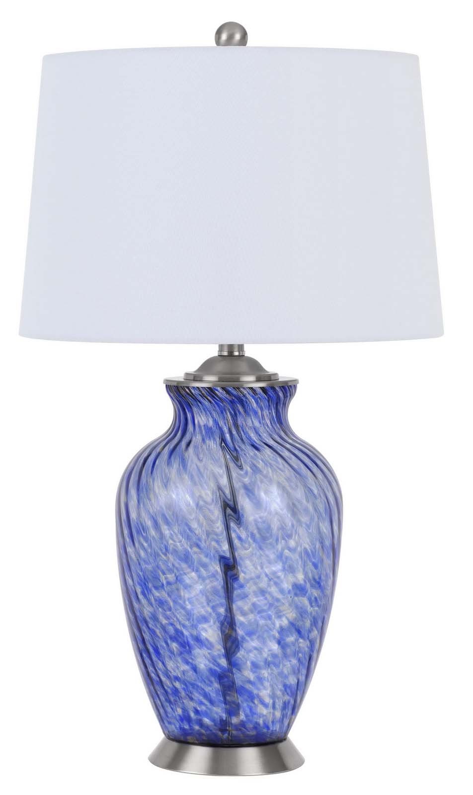 Add a touch of color to any room in your house with this hand-blown art glass table lamp. It features a glass table lamp with a hardback taper drum fabric shade. It is a perfect add-on to your home that will surely add a certain richness to your room’s aesthetics.Read More