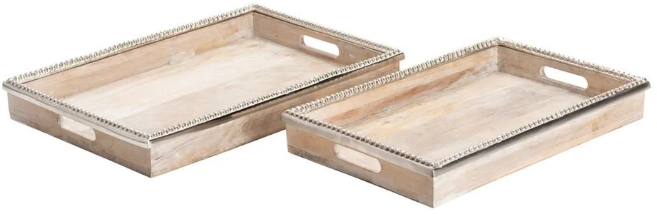 The Crestview Collection Lana Tray is made of wood and has been detailed with a pearl edge that goes around the top of the raised edge. Handles have been cut in the two ends of the two trays to assist in carrying items on them.Read More
