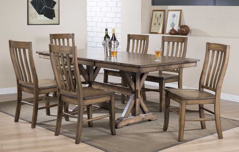 Solid hardwood and clean functional design. Rustic Brown offers a strong, simple dining room foundation suited for small to large areas with standard or counter height options.
